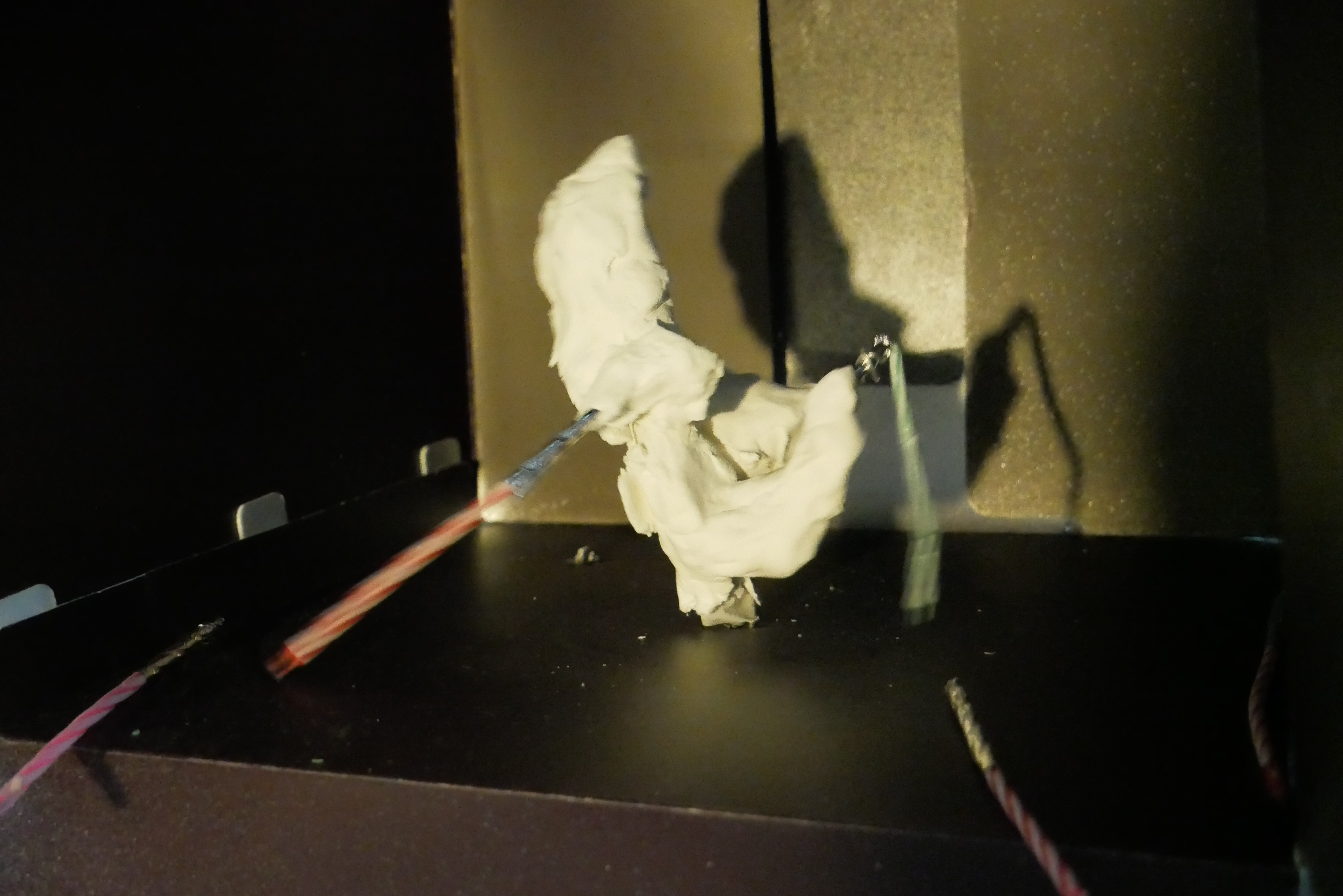 결과로의 설치는 익명의 죽음과 그 전후를 어우르는 공간이 되고, 사물들의 헛된 움직임, 엉뚱한 곳에 놓인 기성품 등의 투영은 극복할 수 없는 심연의 슬픔을 유머와 조잡함으로 누락시키려는 시도가 된다. 이렇게 서로가 서로에게 작업방식을 헌정하고 기꺼이 의지하는 협업실험으로 하여금 두 작가는 서로가 다루던 매체 간 경계를 무르고, 사물을 둘러싼 정동(affect)의 극대화와 개인과 사물에 드리워진 정서적 유대의 장을 기대해 볼 수 있을 것이다.